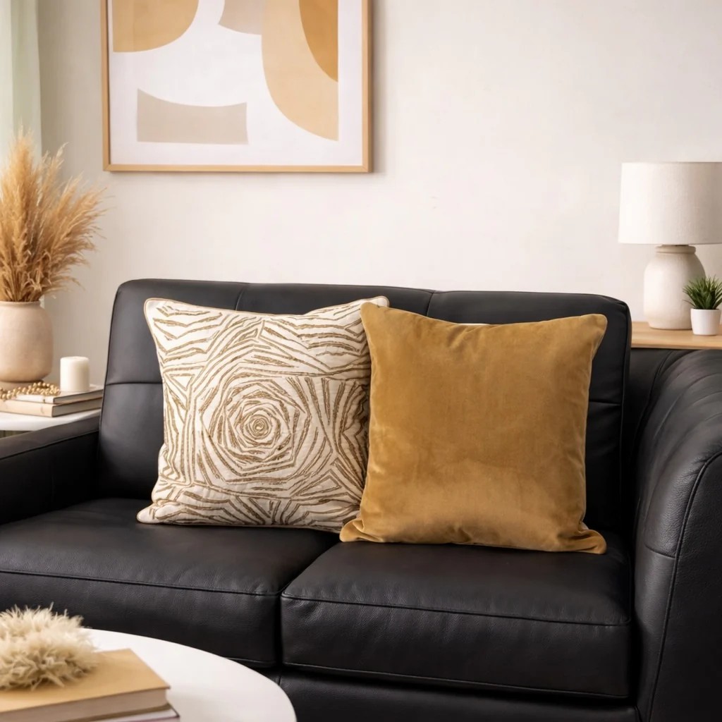 Diseñado para interiores contemporáneos de alta gama, este juego de fundas de cojín combina una cuidada selección de texturas y detalles. Confeccionado con terciopelo y seda satinada, el conjunto presenta diseños coordinados en tonos crema y marrón que realzan sofás, camas y asientos auxiliares con un estilo impecable. Ideal para hogares urbanos modernos y como regalo sofisticado, este juego luce perfecto tanto completo como combinado con cojines lisos para lograr un aspecto equilibrado. Un cojín es pequeño, bordado con cuentas, y el otro liso es reversible: un lado es marrón camel y el otro blanco roto. El cojín liso es de terciopelo y el bordado es de seda satinada.
