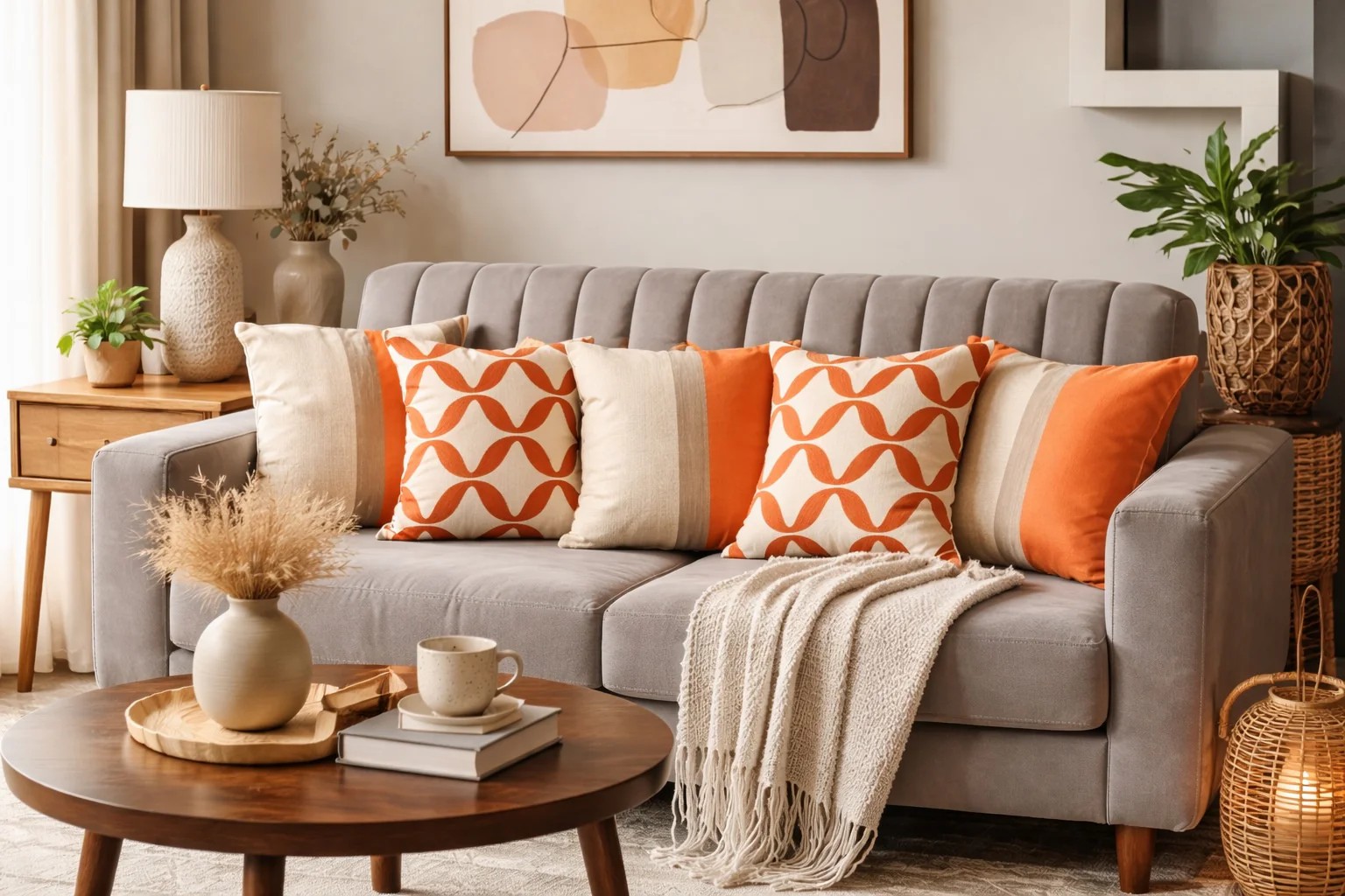 Diseñado para interiores contemporáneos de alta gama, este juego de fundas de cojín combina una cuidada selección de texturas y detalles. Confeccionado con lona de algodón y lino de algodón, el conjunto presenta diseños coordinados en tonos naranja y multicolor que realzan sofás, camas y asientos auxiliares con un estilo impecable. Ideal para hogares urbanos modernos y como regalo sofisticado, este juego luce espectacular tanto completo como combinado con cojines lisos para lograr un aspecto equilibrado. El estampado geométrico de bloques de color del cojín liso se combina a la perfección con el diseño de pétalos bordados.