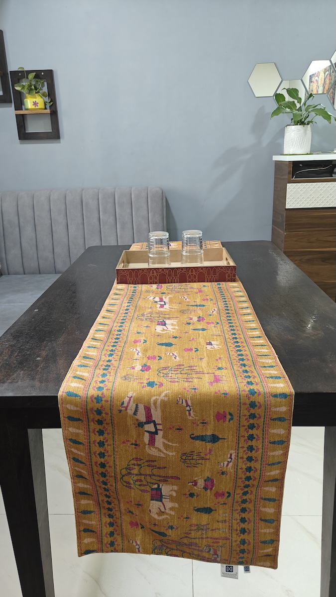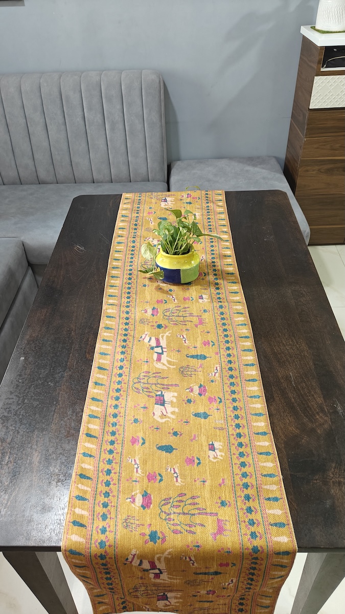 Realza tu experiencia gastronómica con este camino de mesa decorativo. Con un diseño estampado en un sofisticado tono mostaza opaco, este camino de mesa de poliéster añade un toque de elegancia a cualquier mesa. Con un tamaño perfecto de 35,5 x 183 cm, se adapta cómodamente a una mesa de 6 comensales. El resistente poliéster es fácil de limpiar y mantener, ideal para el día a día o para ocasiones especiales. Realza la decoración de tu hogar con este elegante y funcional camino de mesa.