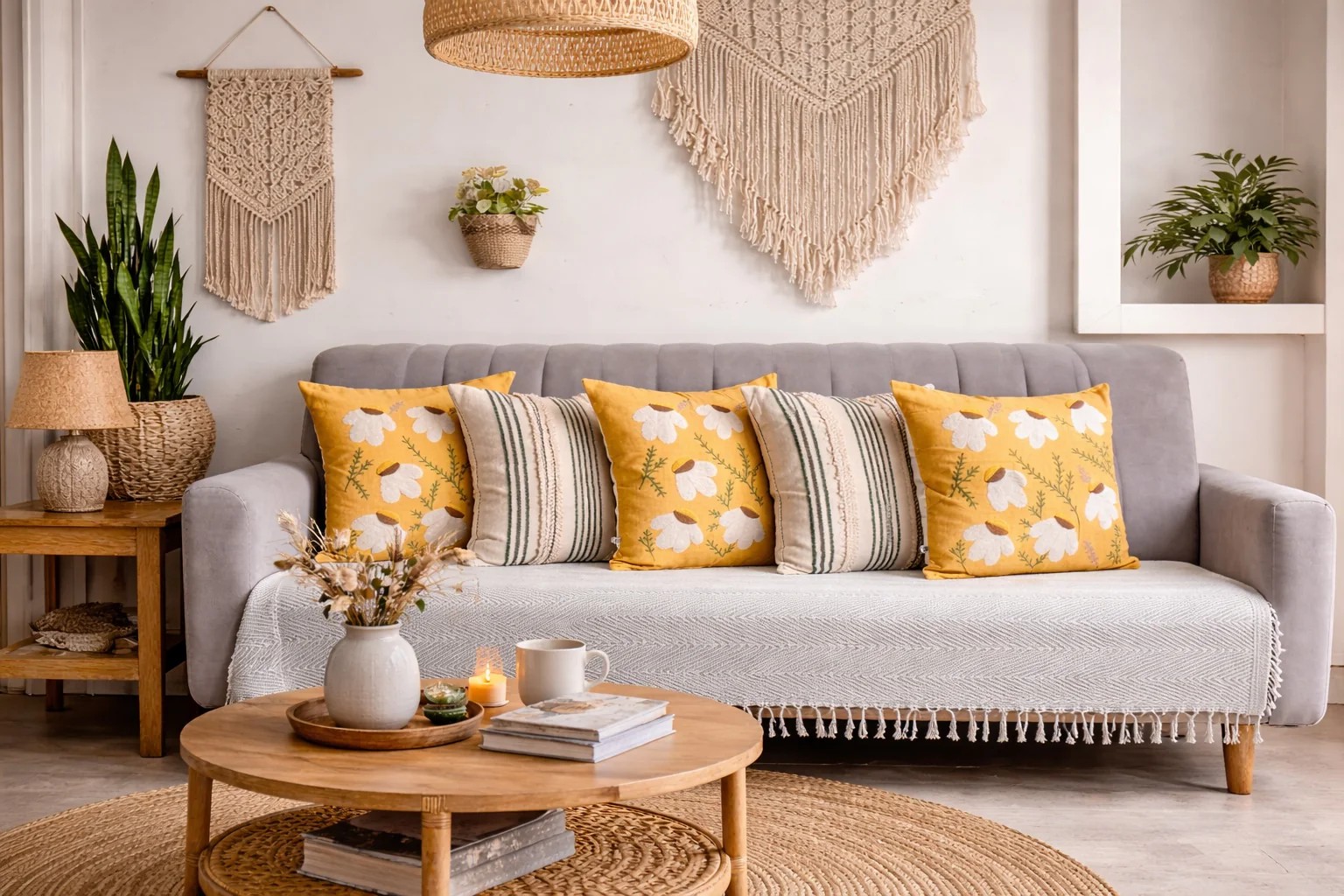 Diseñado para interiores contemporáneos de alta gama, este juego de fundas de cojín combina una cuidada selección de texturas y detalles. Confeccionado con lona de algodón y lino de algodón, el conjunto presenta diseños coordinados en tonos blanco roto multicolor y mostaza que realzan sofás, camas y asientos auxiliares con un estilo impecable. Ideal para hogares urbanos modernos y como regalo sofisticado, este juego luce espectacular tanto completo como combinado con cojines lisos para lograr un aspecto equilibrado. Bordado, encaje, diseño de capitoné.