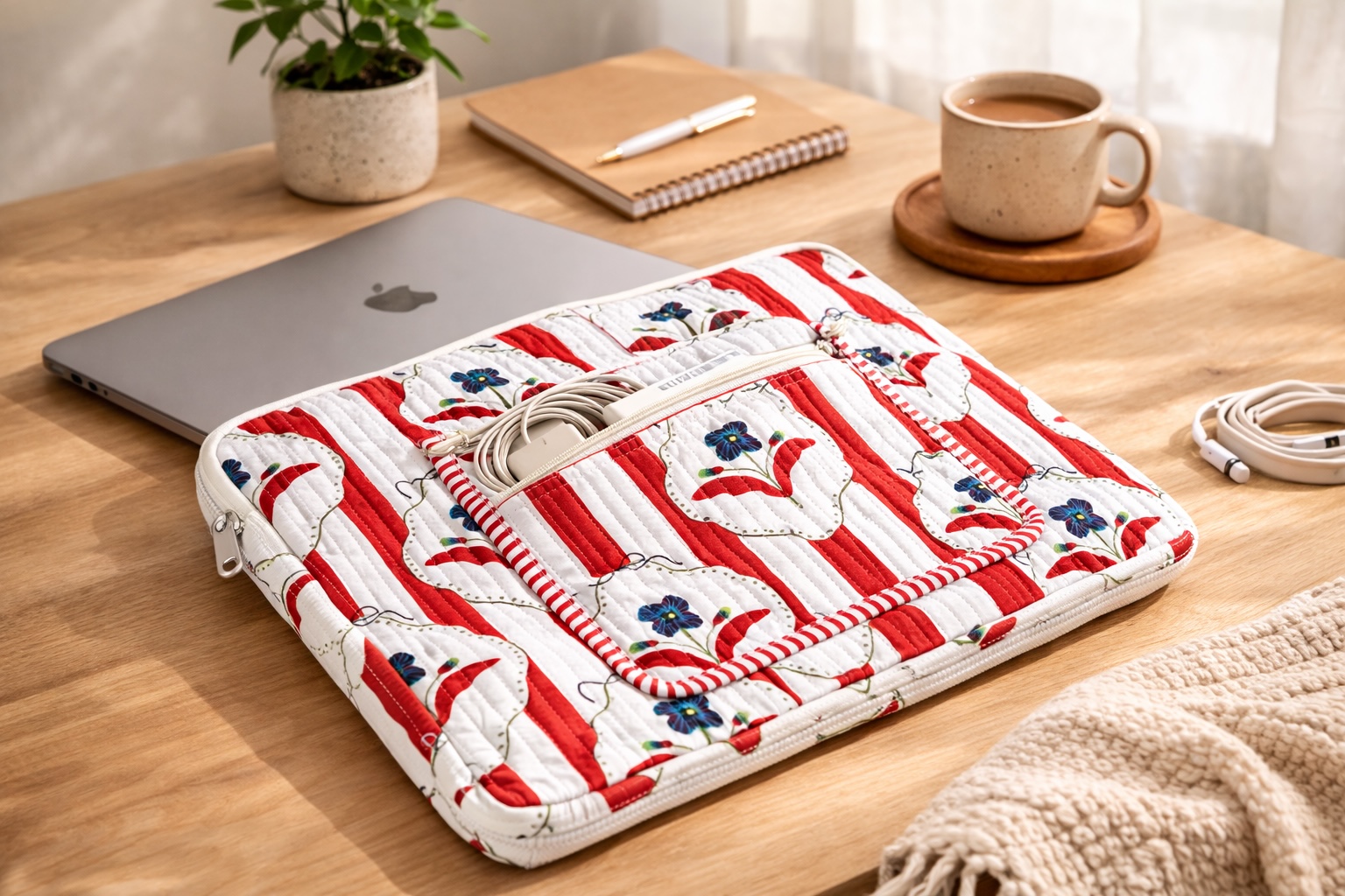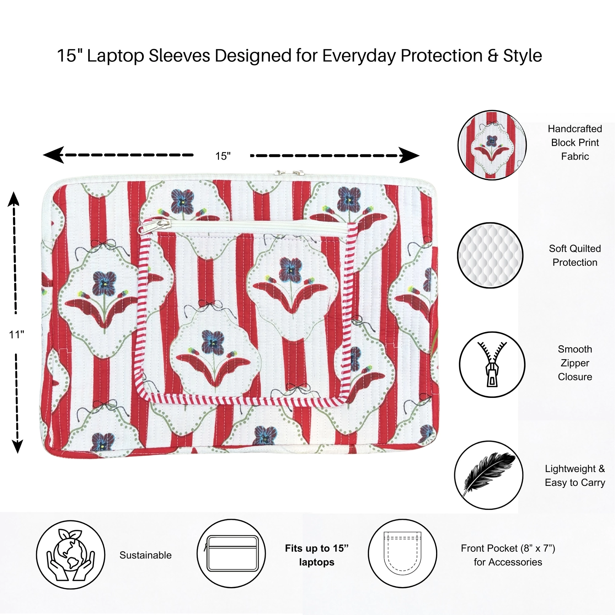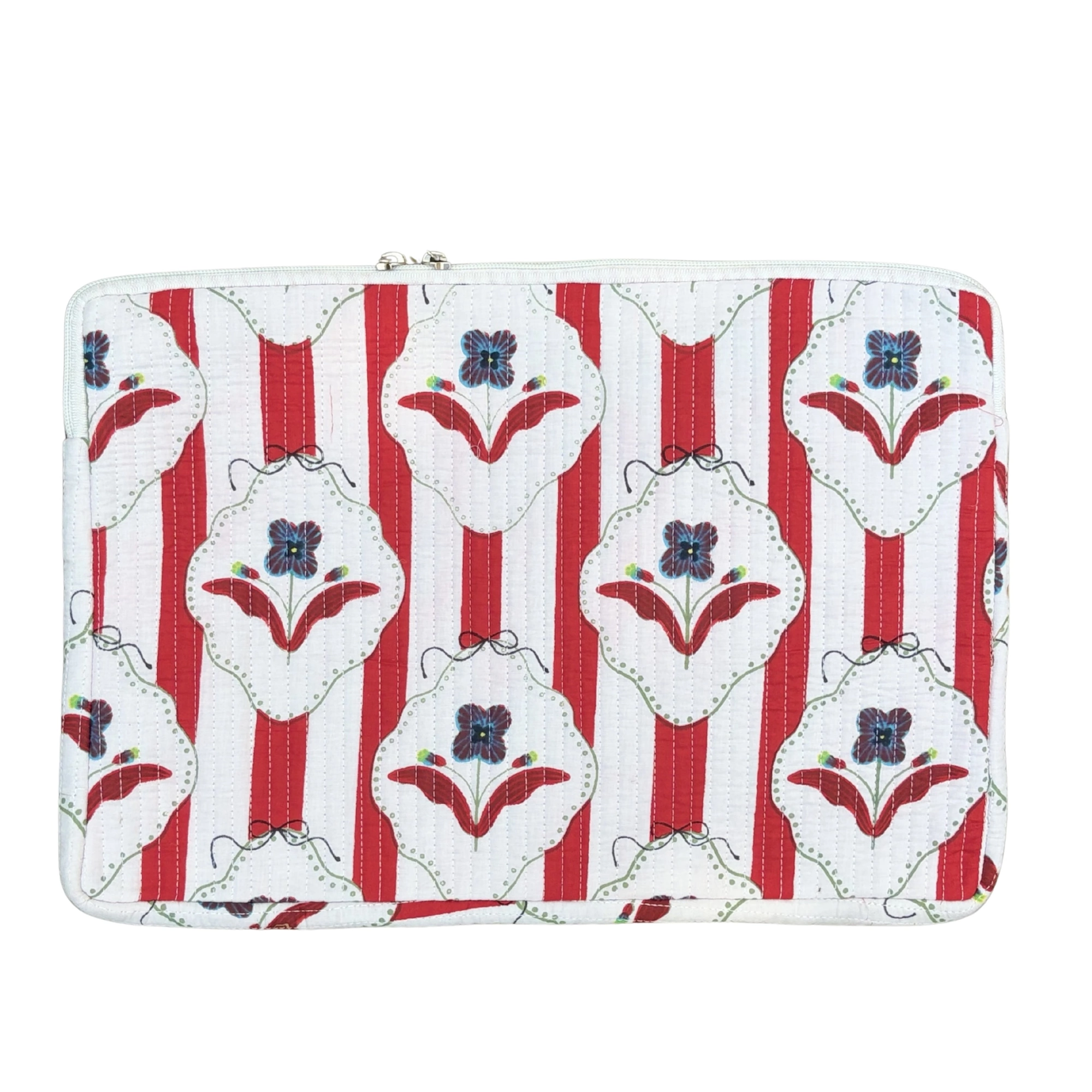Protect your device in style with this Block Print Quilted Cotton Laptop Sleeve with Front Pocket. Crafted from soft quilted cotton and adorned with traditional block print patterns, this sleeve combines heritage craftsmanship with everyday practicality.