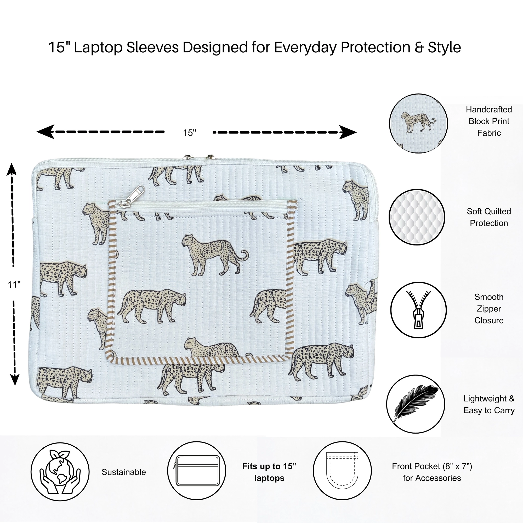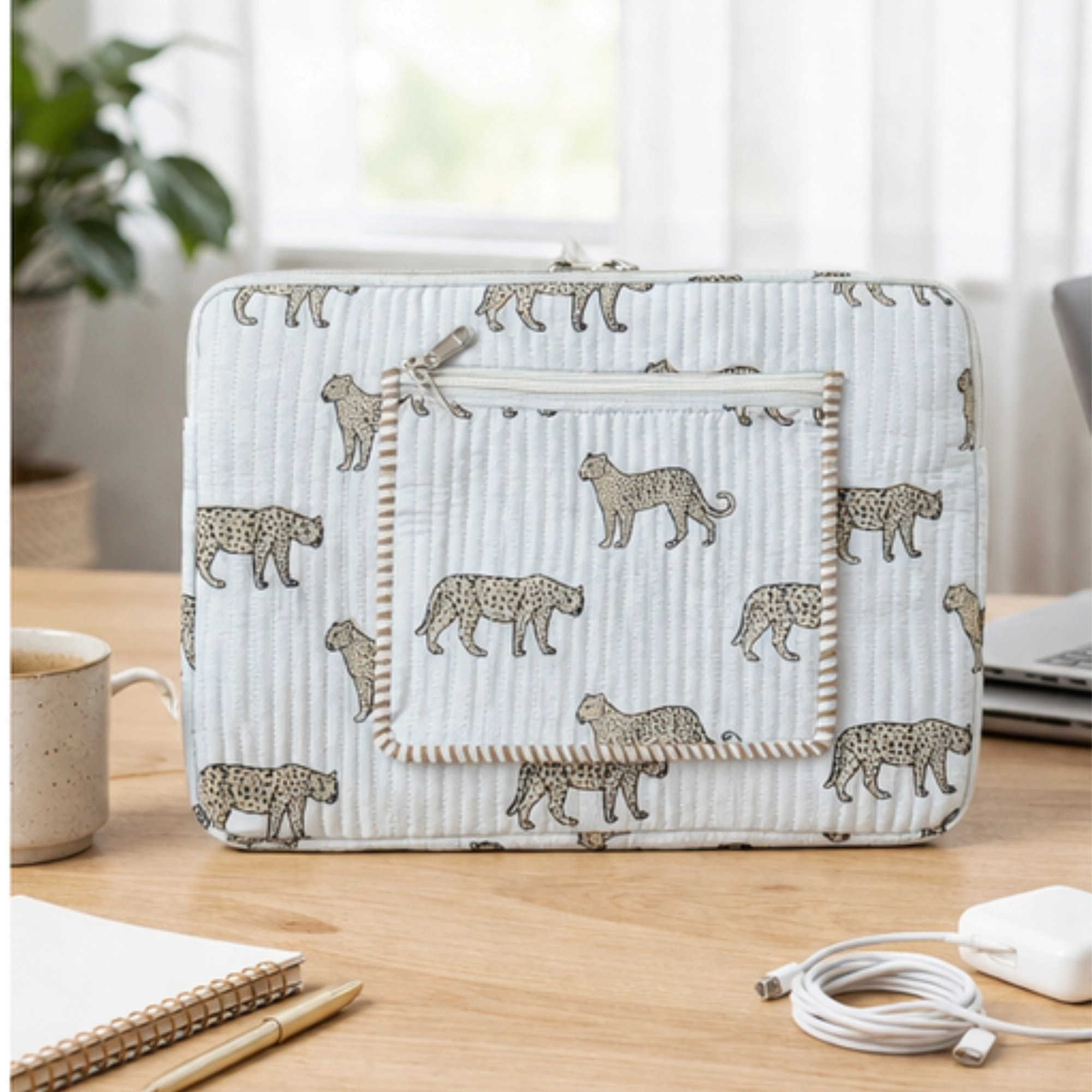 Protect your device in style with this Block Print Quilted Cotton Laptop Sleeve with Front Pocket. Crafted from soft quilted cotton and adorned with traditional block print patterns, this sleeve combines heritage craftsmanship with everyday practicality. The padded quilting helps cushion your laptop or tablet, while the zip closure ensures secure storage. A convenient front pocket provides additional space to keep essentials like a charger, mouse, cables, or small documents organized. Lightweight and easy to carry, this sleeve is ideal for daily office use, work-from-cafés, travel, or simply storing your device safely at home.