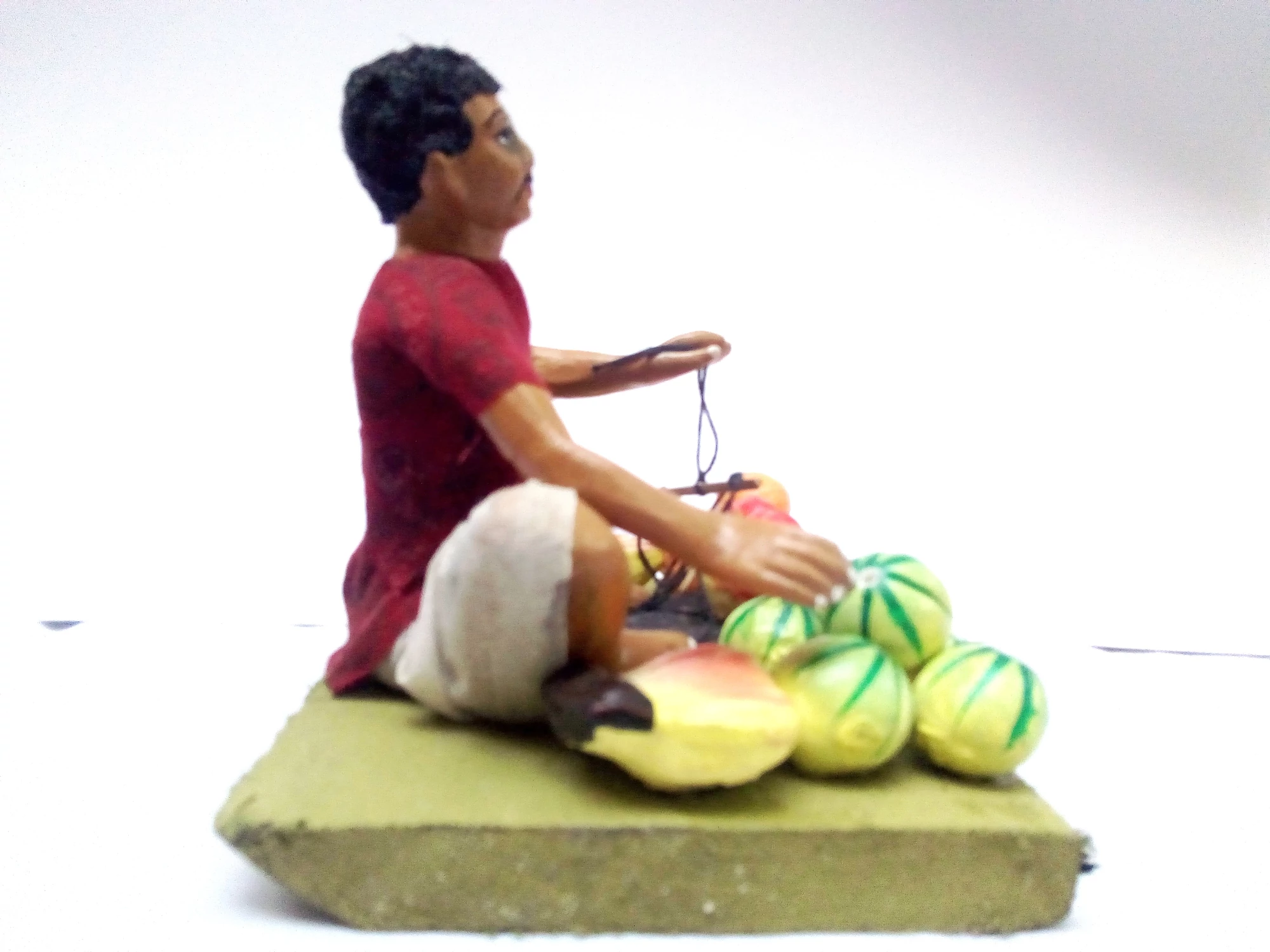 Krishnanagar Handmade Clay Gift & Décor | Standard- Sitting Human Figure Miniature Idol - Vegetable Seller