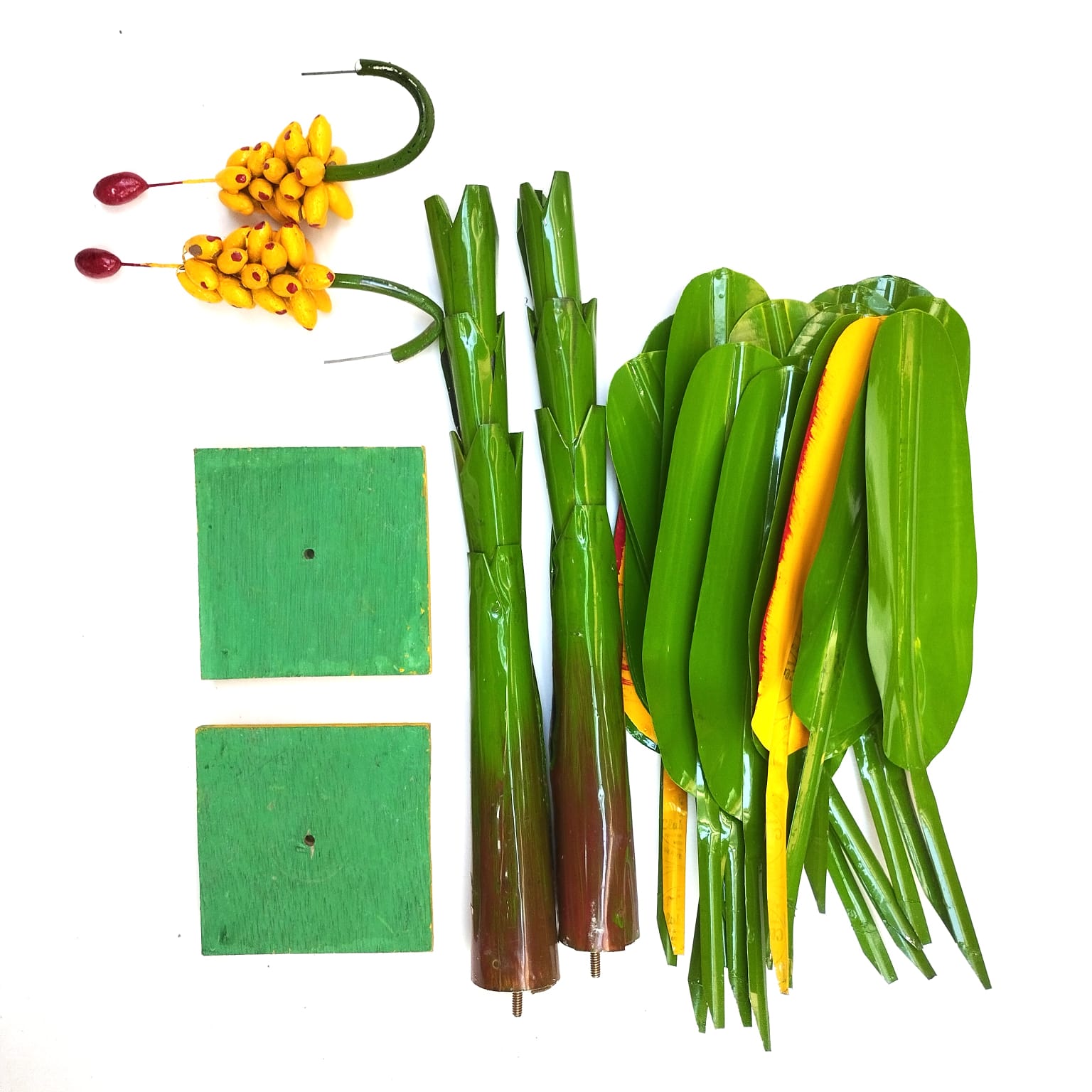Artificial Banana Tree Pair. wooden crafts This beautifully crafted set of banana trees adds a touch of tradition and elegance to your pooja decorations. Available at simonart and printing