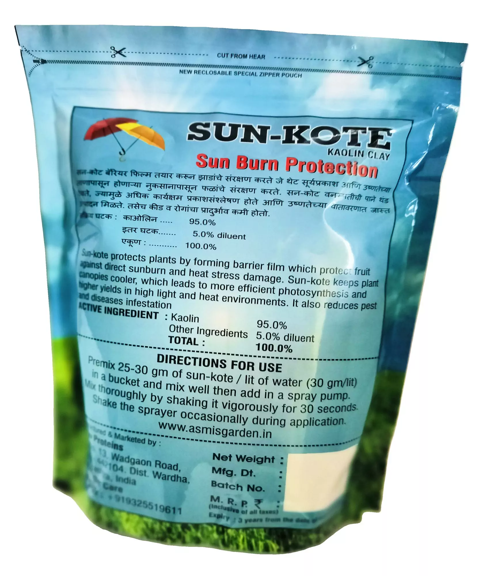 Protect your crops from heat stress and sun damage with Sun-Kote, a premium 100% Kaolin Clay formulation designed to shield plants from harsh sunlight. This natural plant protectant creates a fine white reflective coating on leaves and fruits, reducing heat absorption, minimizing sunburn, and improving overall plant health.