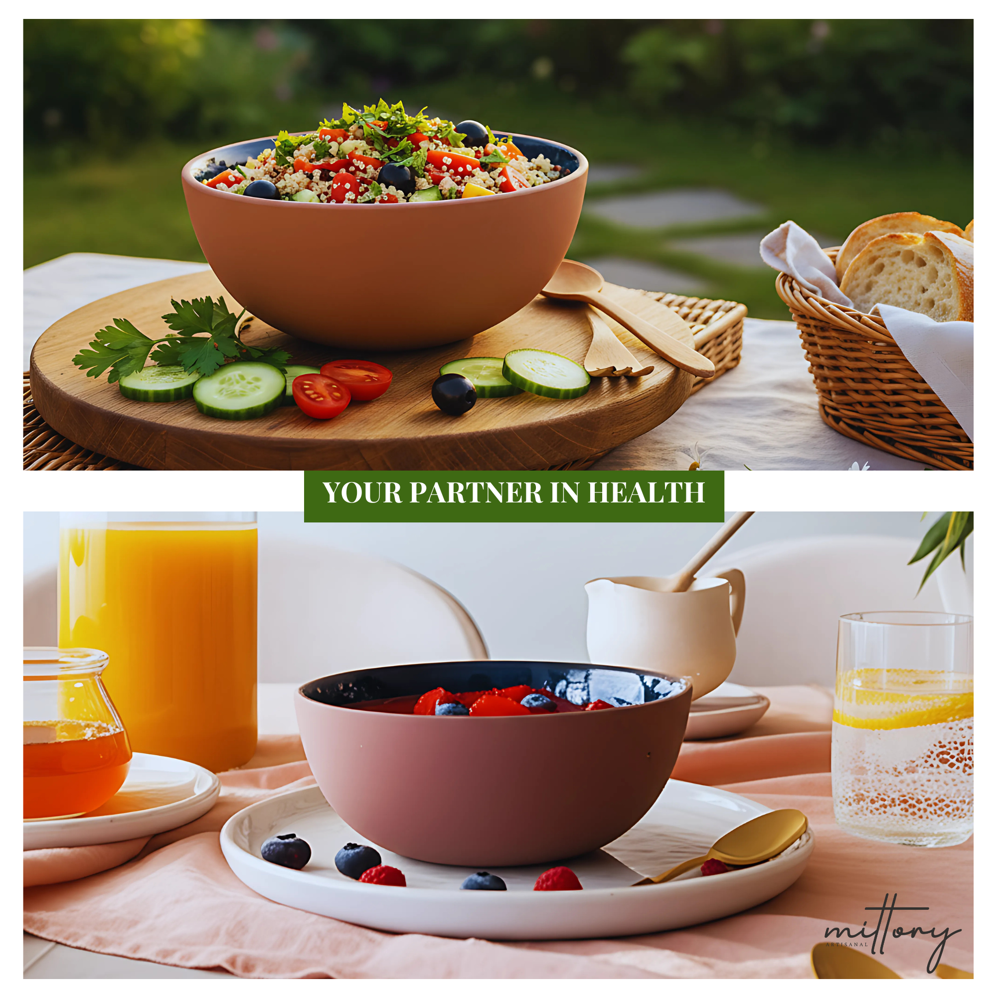 Mejora tu experiencia culinaria con la ensaladera de cerámica Mittory. Este tazón de 600 ml luce un exclusivo acabado mate en tonos tierra y azul brillante, que añade sofisticación a cualquier mesa. Ideal para servir ensaladas, ramen, cereales o pasta, es apto para microondas para un calentamiento rápido. Fabricado en cerámica de alta calidad, este tazón es duradero y fácil de limpiar, lo que garantiza un uso prolongado. Un complemento versátil y elegante para tu menaje de cocina, perfecto como un regalo especial para cualquier ocasión.