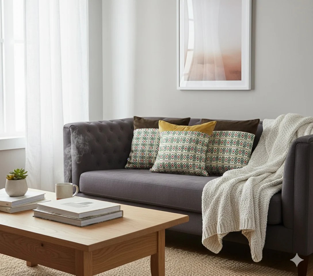 Diseñado para interiores contemporáneos de alta gama, este juego de fundas de cojín reúne una mezcla cuidadosamente seleccionada de texturas y detalles. Elaborado con terciopelo, el conjunto presenta diseños coordinados en tonos blanco roto que realzan sofás, camas y asientos auxiliares con un estilo sencillo. Ideal para hogares urbanos modernos y como regalo refinado, este juego funciona a la perfección como un conjunto completo o combinado con cojines lisos para un aspecto equilibrado. Este diseño se basa en la regla de los tercios: una parte es de terciopelo liso y el resto se complementa con el estampado. Este es un juego de 3 cojines: 2 cojines tienen terciopelo liso marrón café y 1 es de color camel.