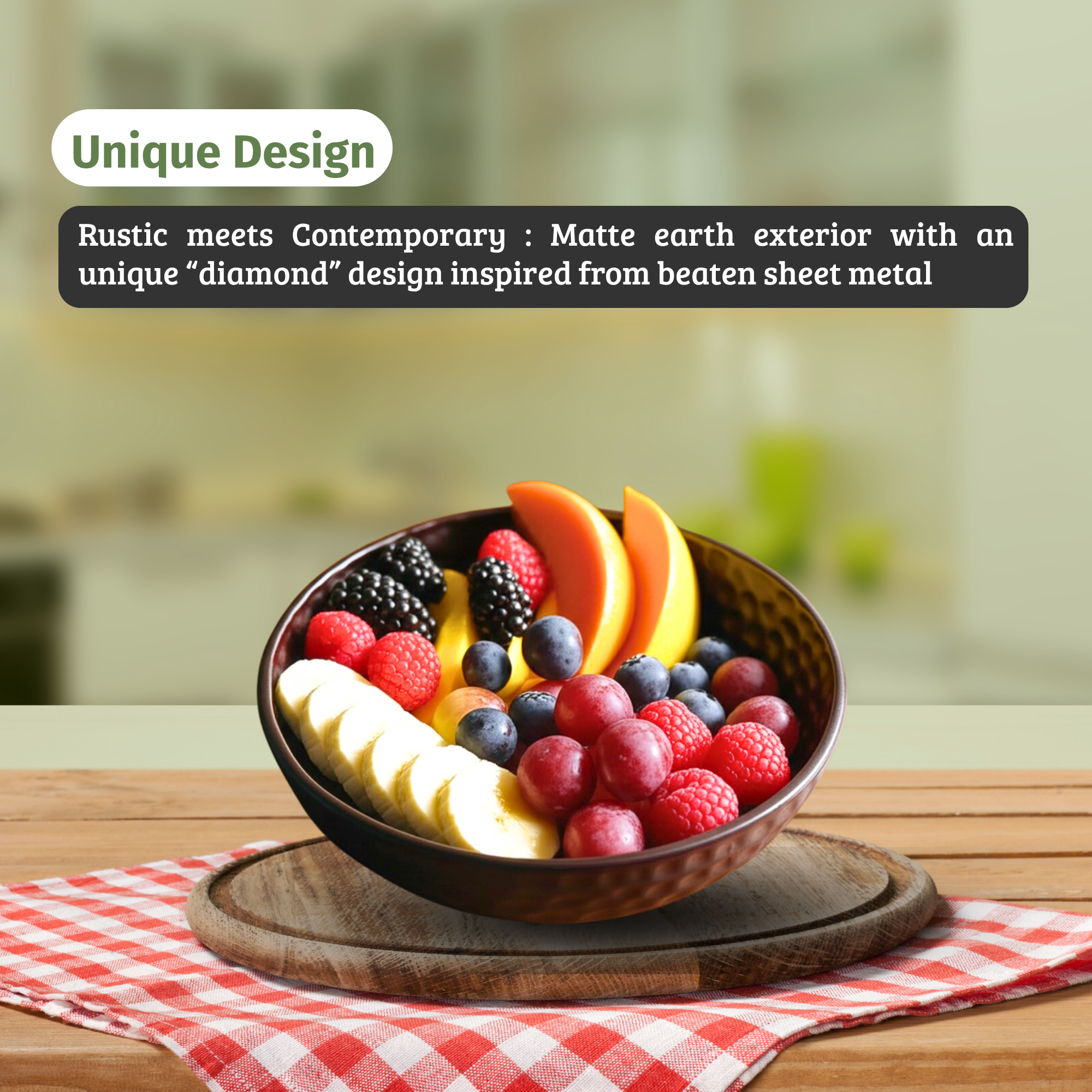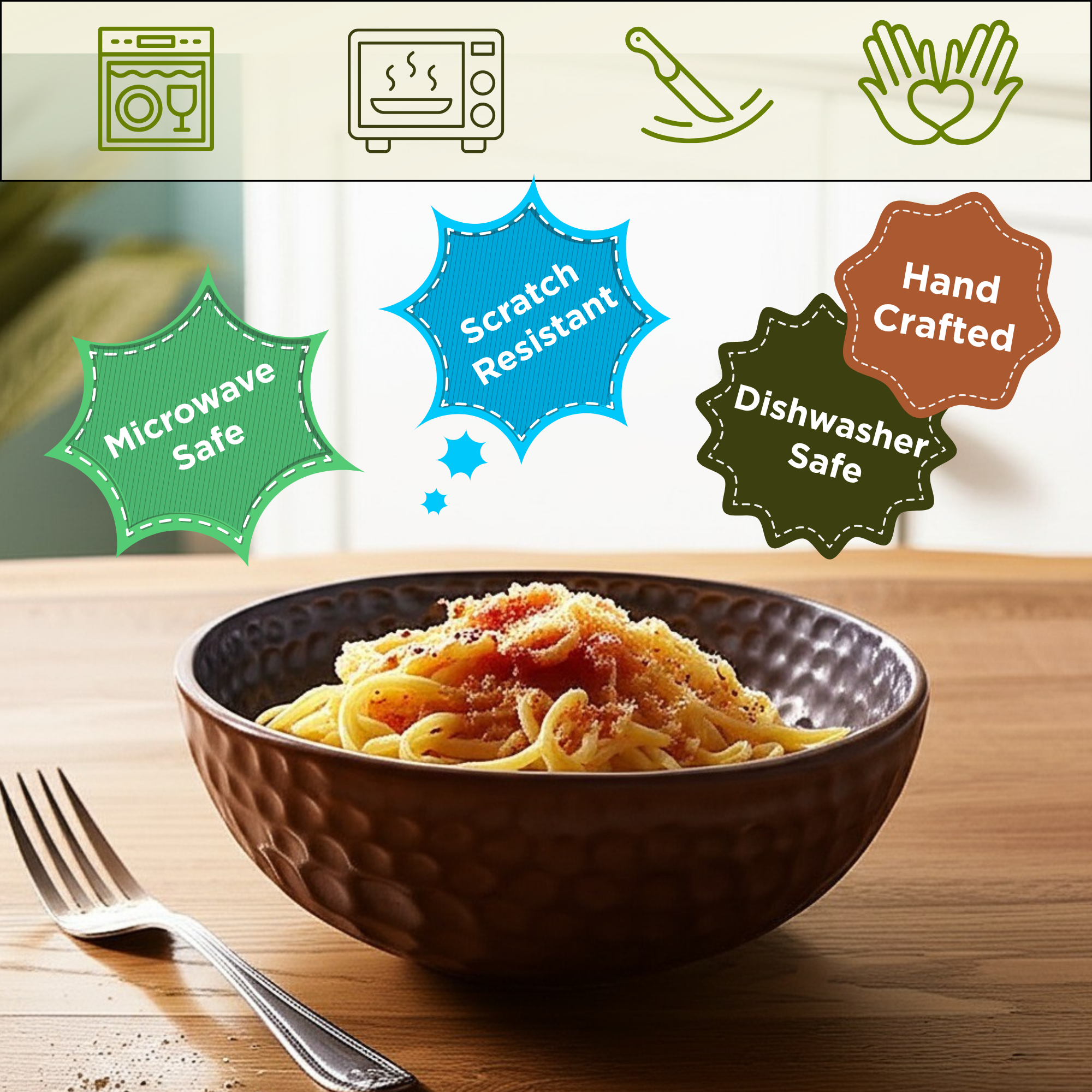 Eleve su experiencia culinaria con el tazón de cerámica Mittory. Con un distintivo diseño de rombos mate y un rico tono marrón, este tazón aporta sofisticación a cualquier mesa. Su capacidad de 920 ml lo hace ideal para servir una variedad de platos, desde deliciosos curris y aromáticos biryanis hasta ensaladas frescas y reconfortantes pastas. Fabricado en cerámica duradera y apta para microondas, este tazón ofrece practicidad y durabilidad, perfecto tanto para comidas diarias como para ocasiones especiales.