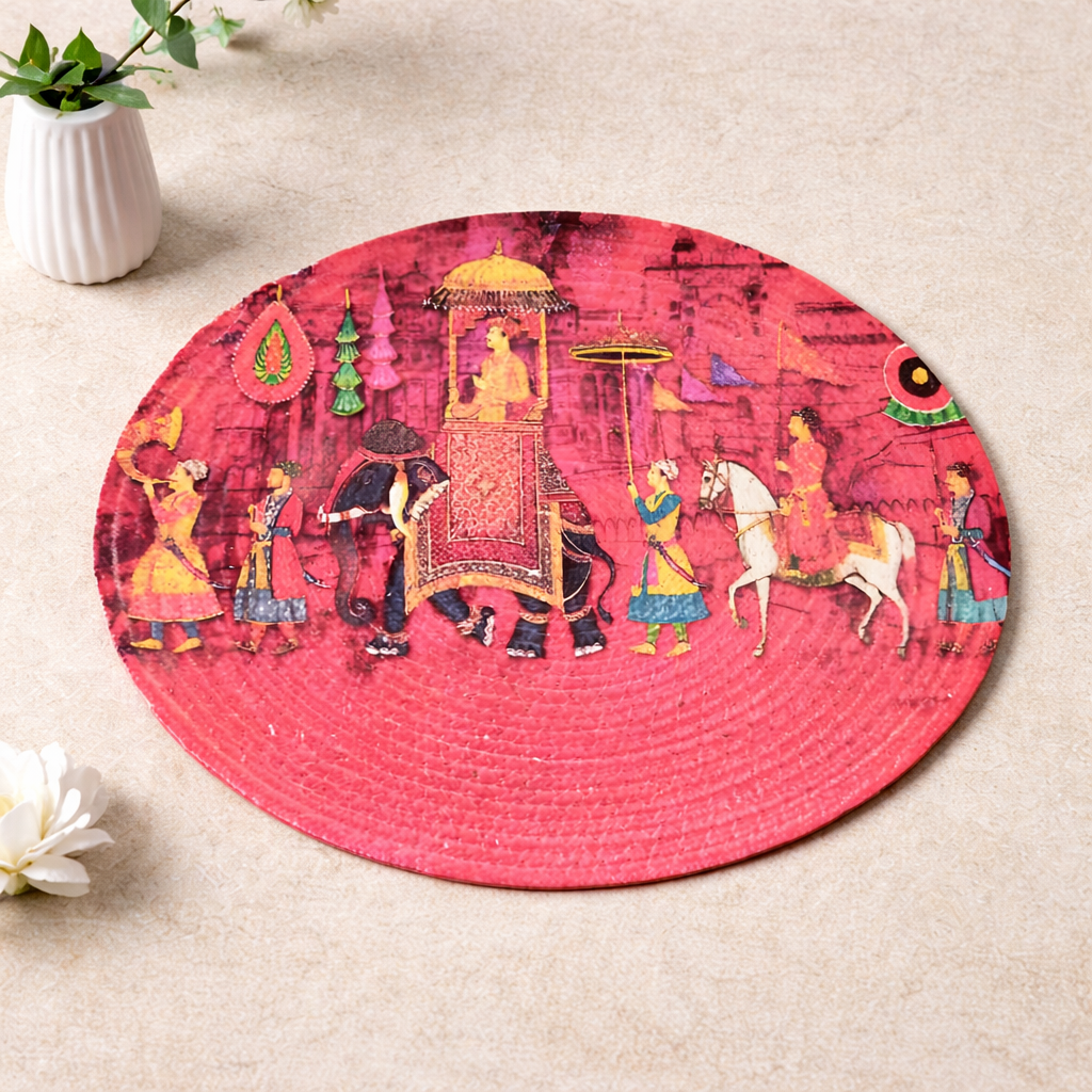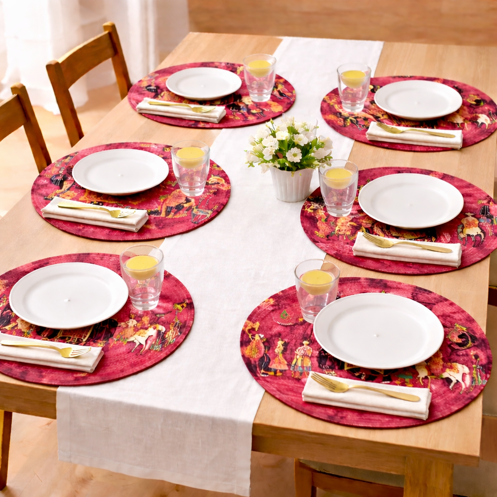 Mejora tu experiencia gastronómica con nuestros manteles individuales de algodón con estampado tradicional Palki. Estos manteles redondos de 35 cm (14 pulgadas) combinan la estética étnica con la funcionalidad moderna. Ya sea para una cena festiva o para el uso diario, estos manteles de algodón ofrecen la protección perfecta contra el calor y las manchas. El vibrante estampado Palki añade un toque de la herencia india a la decoración de tu hogar. Disponibles en juegos de 2, 4 y 6 unidades para adaptarse a las necesidades de tu familia.